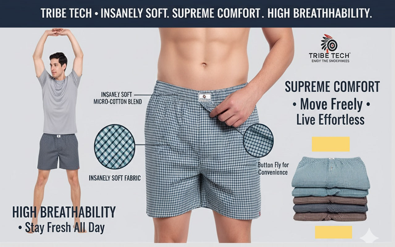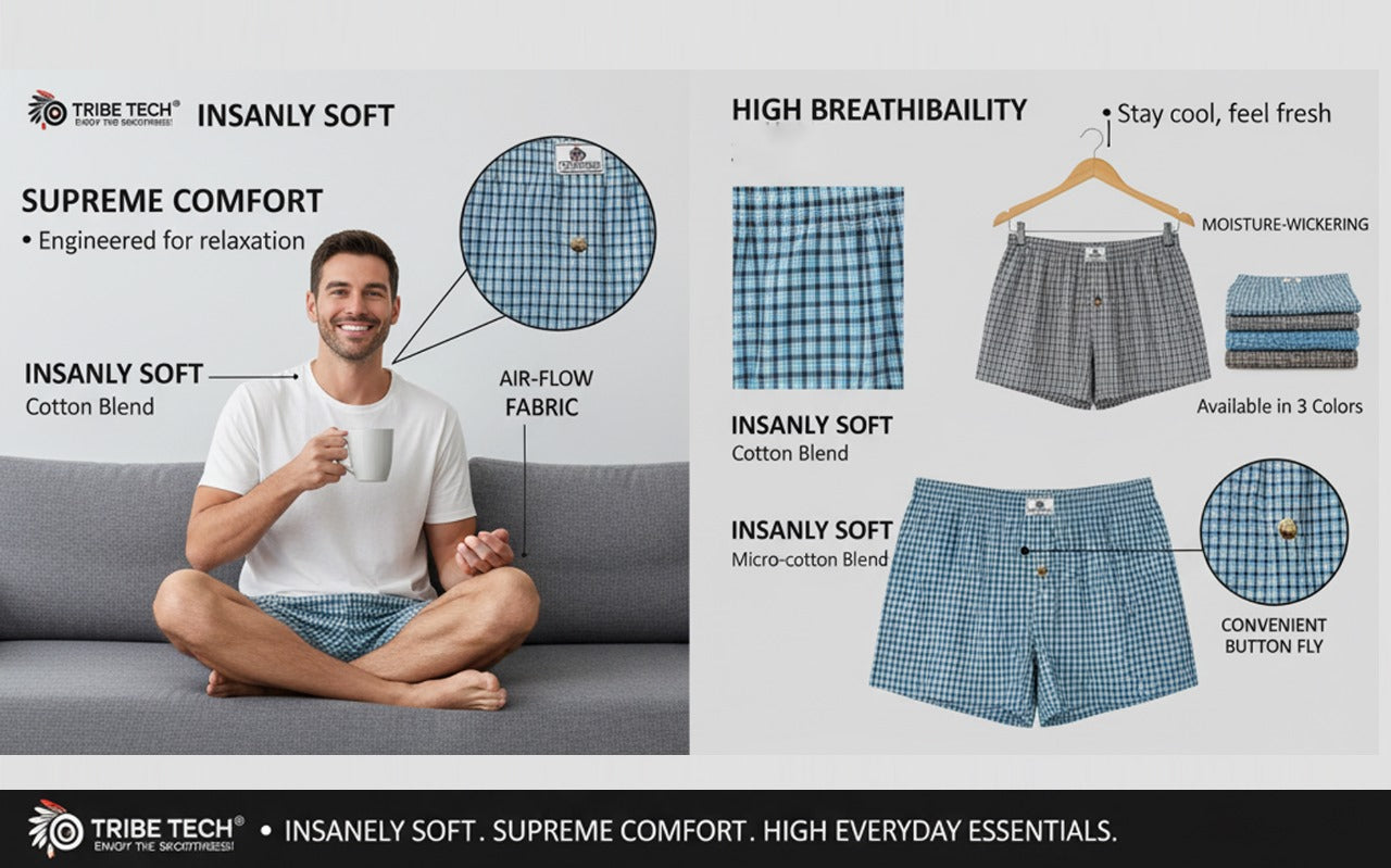 - COMFORT FIT: Relaxed-fit boxer shorts with elastic waistband and convenient side pockets for everyday comfort and functionality